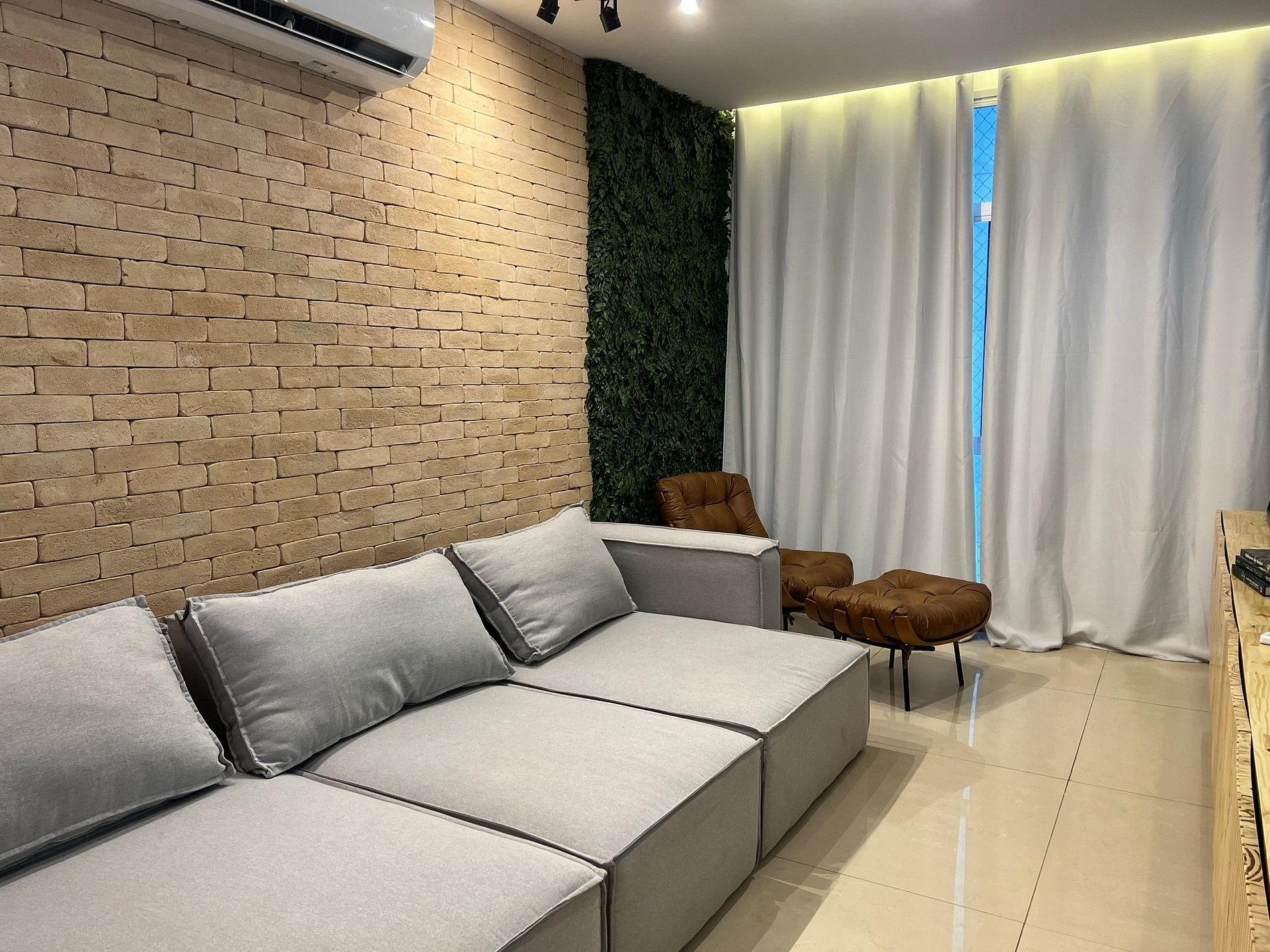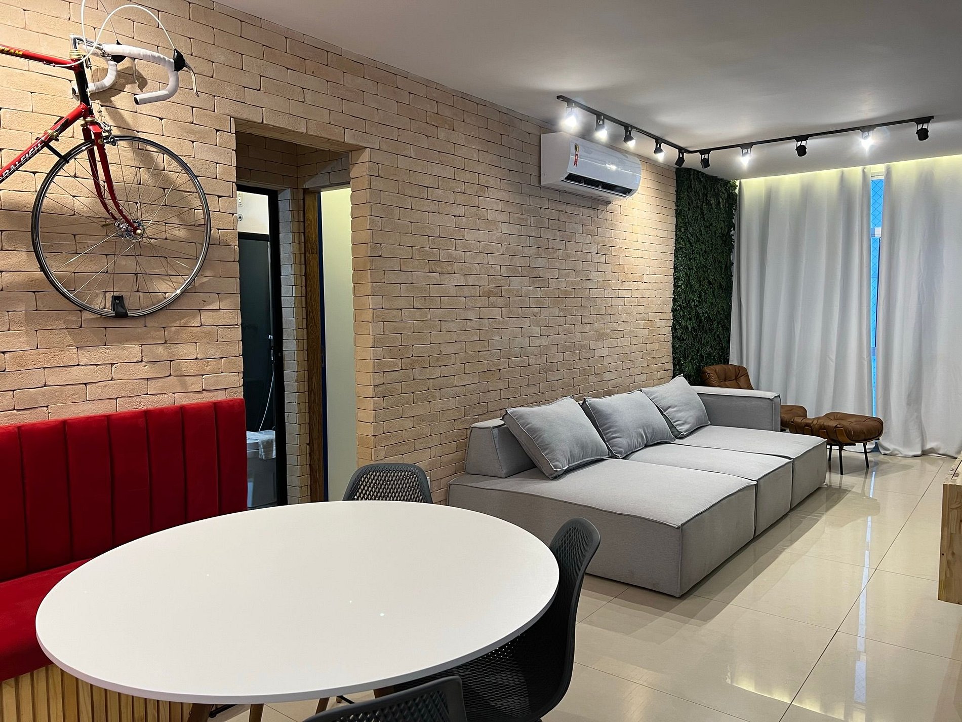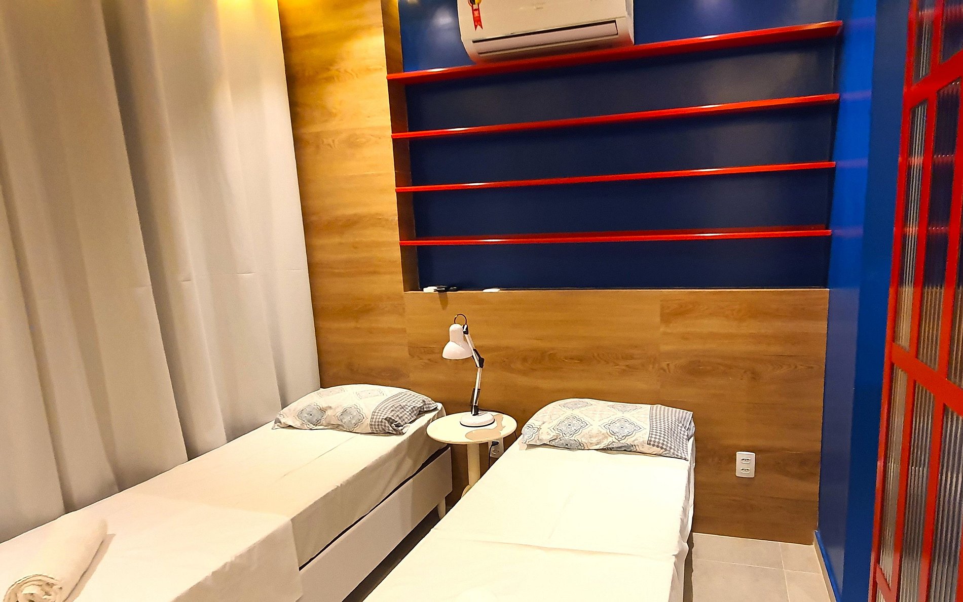 Duas camas de solteiro e uma queen nos quartos. Splits novos de última geração na sala e quartos. Suite no quarto de solteiro e banheiro social para atender a sala e o quarto