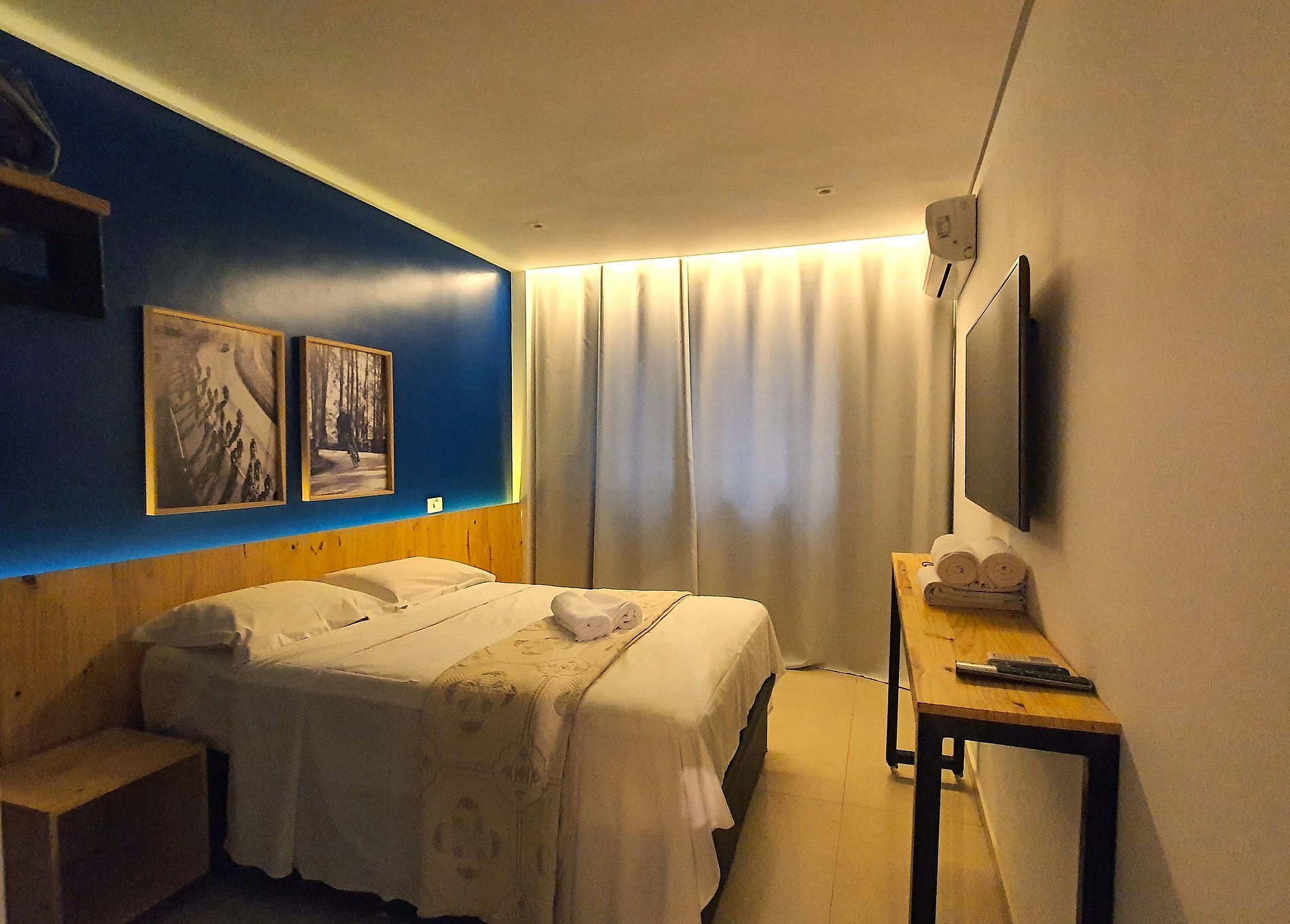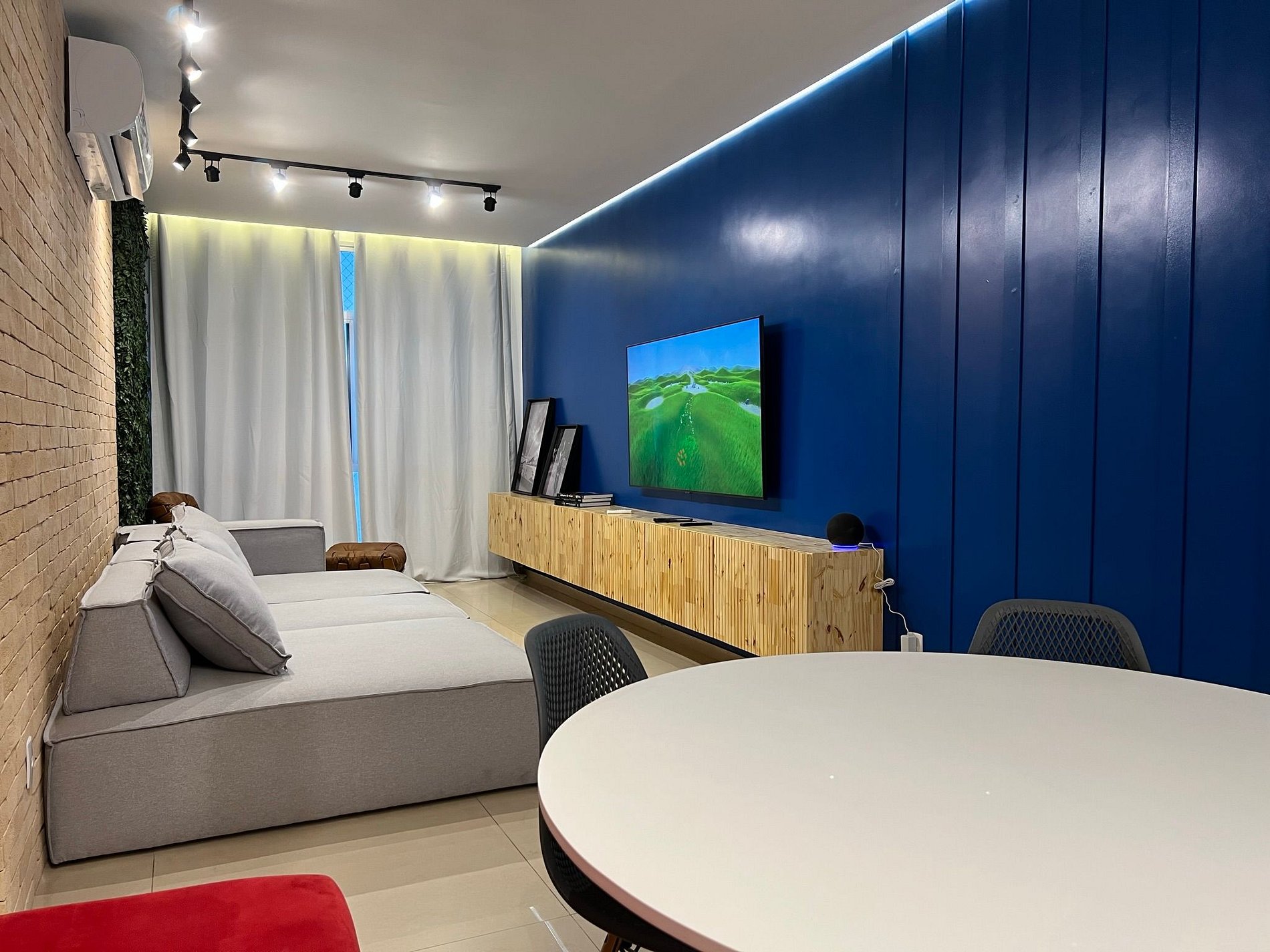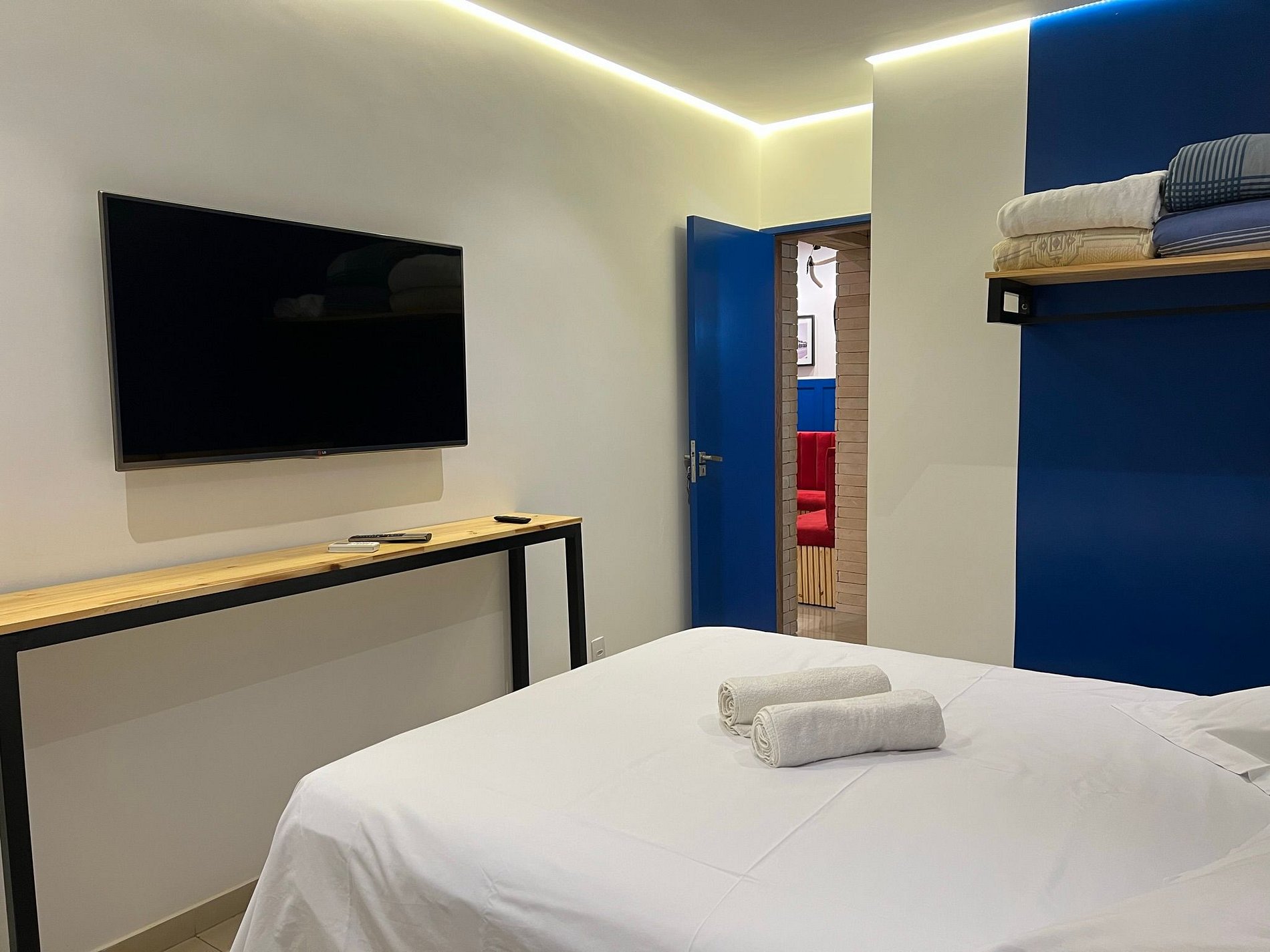 Duas camas de solteiro e uma queen nos quartos. Splits novos de última geração na sala e quartos. Suite no quarto de solteiro e banheiro social para atender a sala e o quarto
