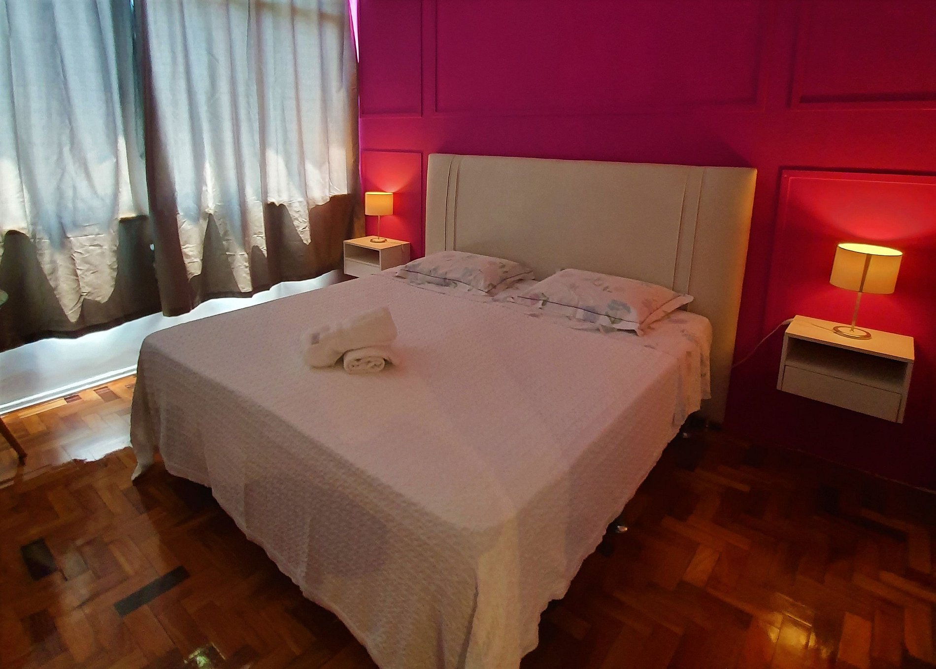 O apartamento possui 2 quartos, sala, cozinha e 2 banheiros, sendo um deles principal e o outro auxiliar. Um quarto conta com uma cama Queen, o segundo quarto conta com duas camas de solteiro e na sala temos um sofá cama de casal, comportando confortavelmente até 6 pessoas. Os dois quartos e a sala possuem ar condicionado split O apartamento possui internet gratuita e TV a cabo na sala, conta com uma pequena mesa para refeições e é equipado com utensílios básicos de cozinha como por exemplo: fogão, geladeira, micro-ondas e máquina de café expresso. Além disso, disponibilizamos roupas de cama e toalhas para todos os hóspedes! O edifício possui 2 elevadores, 1 vaga de garagem!