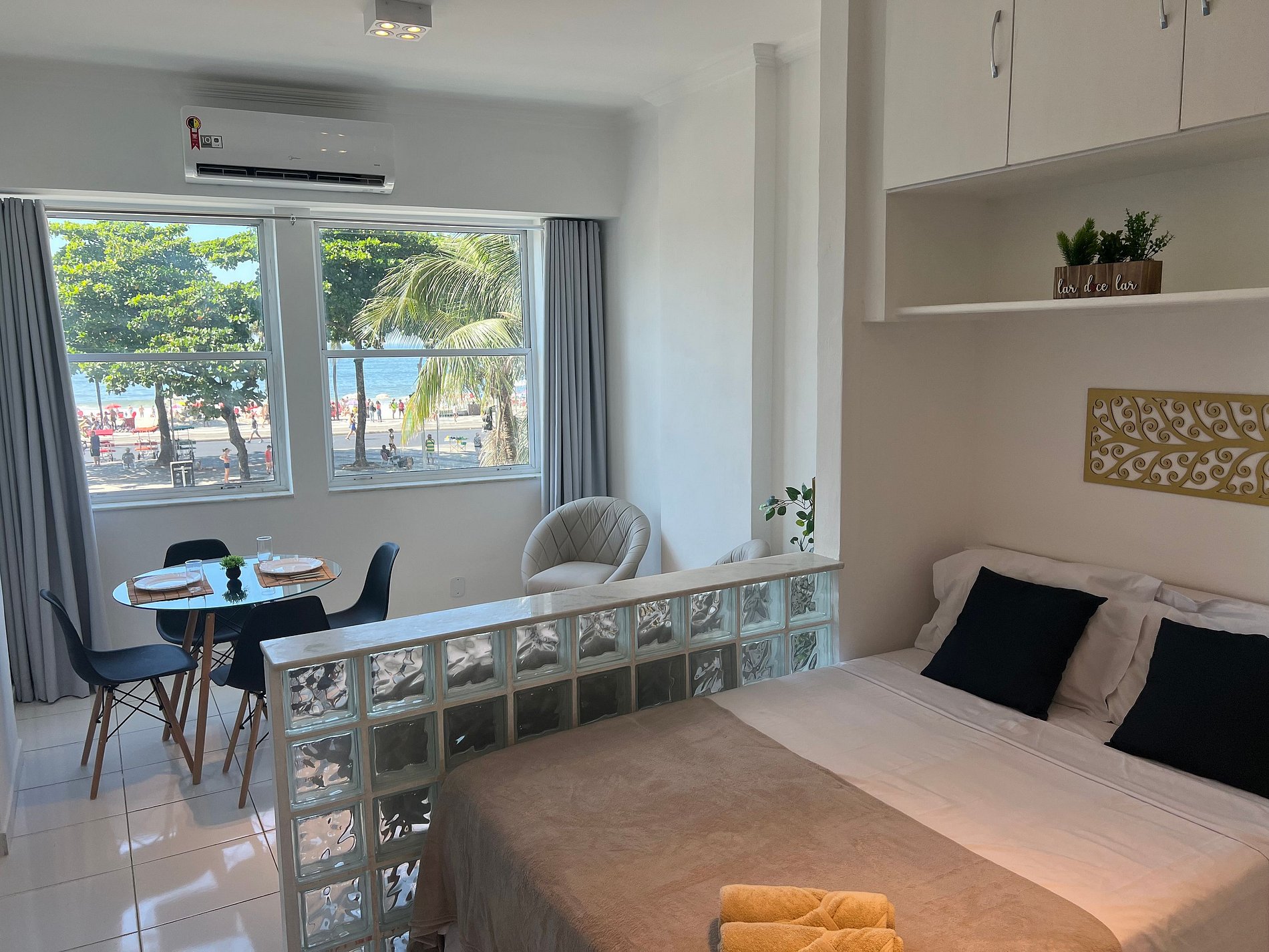 Apartamento com vista para a praia mais famosa do Brasil, Copacabanba! Com ar-condicionado split e todos os ambientes , tv smart e internet. Pertinho de tudo. Cama com colchão Ortobom, para garantir seu conforto! Portaria 24 horas e a melhor estadia na Cidade Maravilhosa.