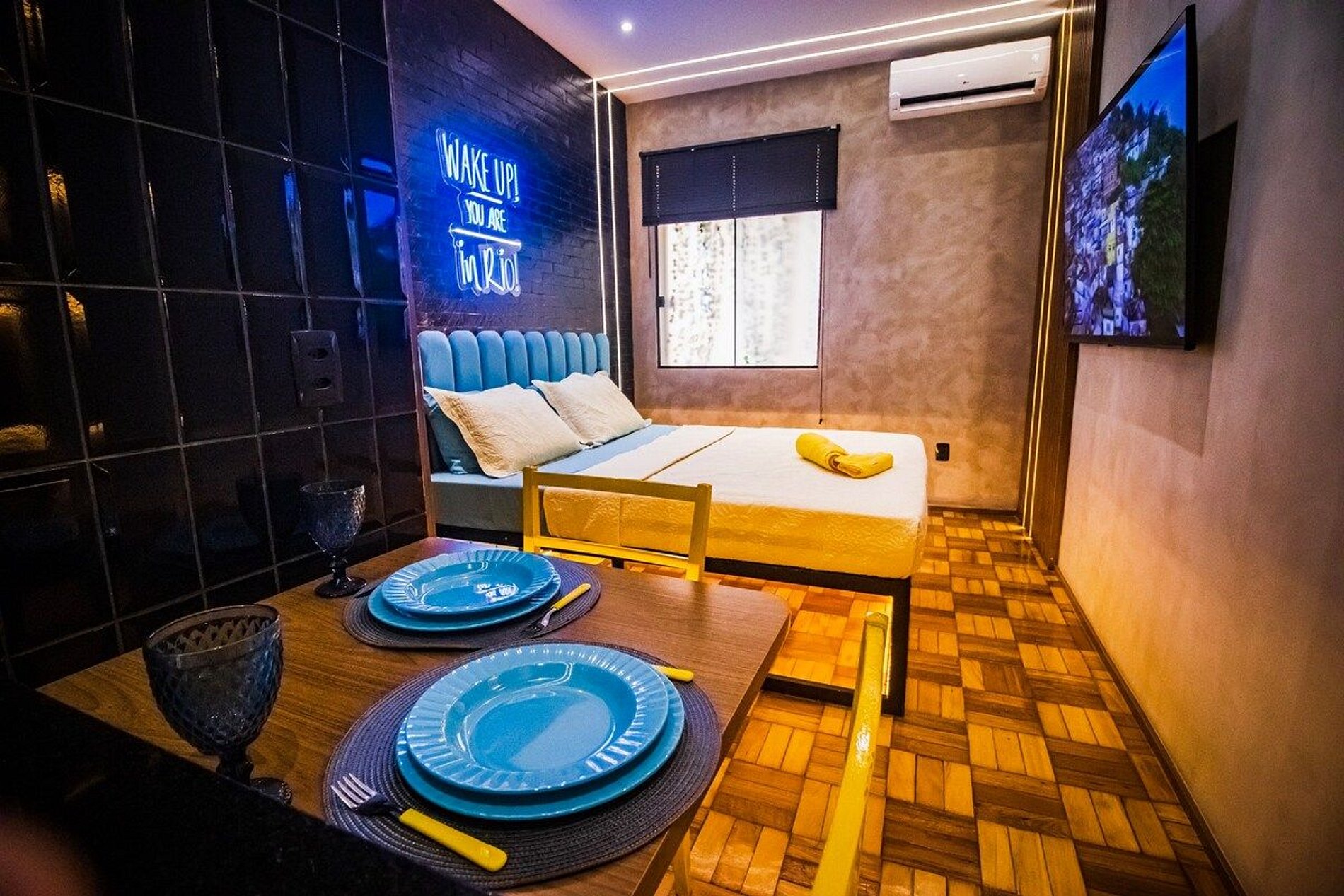 Bem-vindos ao Seu apto no Rio ❤ Design clean e sofisticado para melhorar sua viagem no Airbnb! Lindo Studio Decorado por Designer, todo pensado na sua experiência, estilo Tiny House Nation com diversas funcionalidades além de ar condicionado split, maquina de lavar e cozinha equipada, TV 4k smart, luzes e interruptores integrados com a Alexa! A poucos minutos da praia!